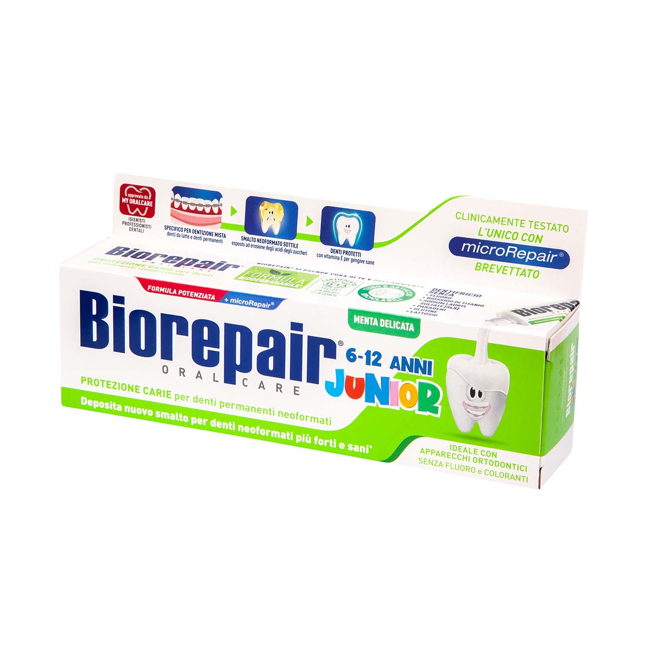 Dětská zubní pasta Biorepair Junior 6-12 s mátovou příchutí pomáhá remineralizovat zubní sklovinu a poskytuje kompletní ochranu pro smíšený dětský chrup. Částice microRepair obalují zuby, opravují je a chrání před zubním kazem a plakem. Zubní pasta je ideální pro děti s kombinovaným dětským chrupem, poskytuje kompletní ochranu a podporu pro zdravé a silné zuby a dásně.