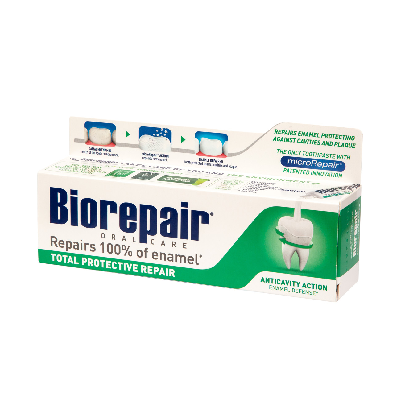 - Vysoká koncentrace microRepair® 200 mg/g, čímž předchází erozi a opravuje zubní sklovinu.